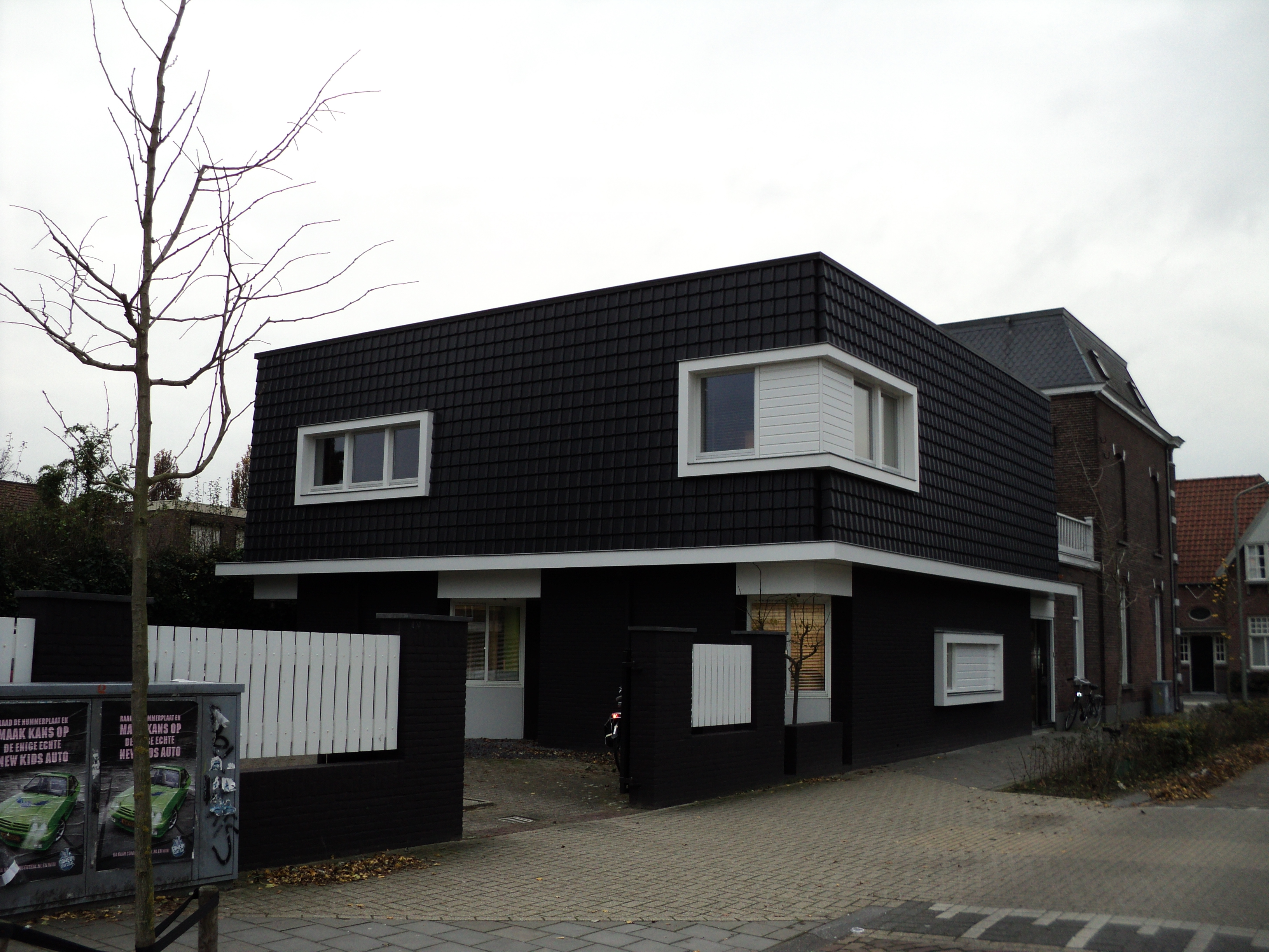 Dakopbouw met verticaal bevestigde dakpannen als gevelbekleding, a/d Kasteellaan te Boxtel