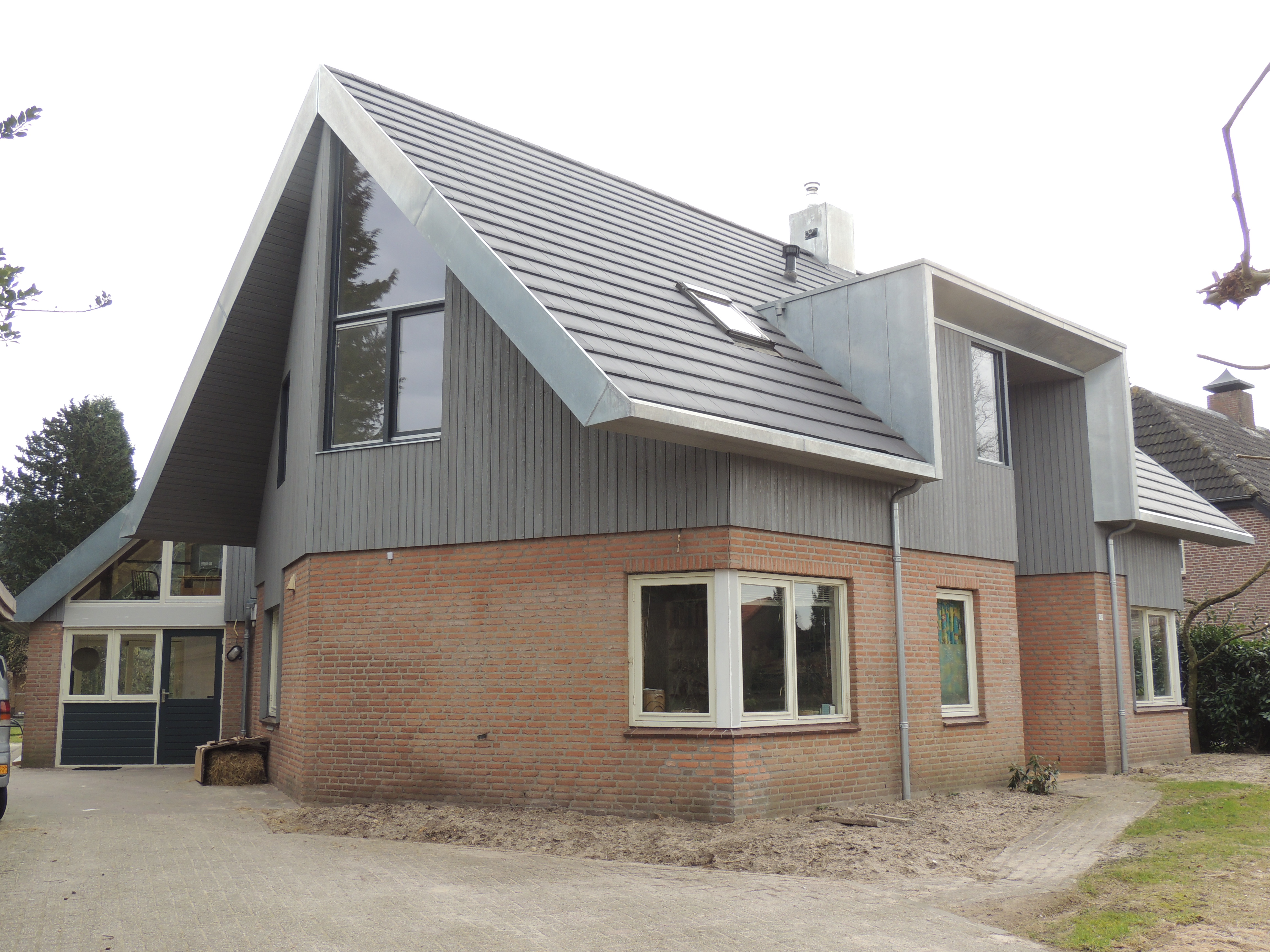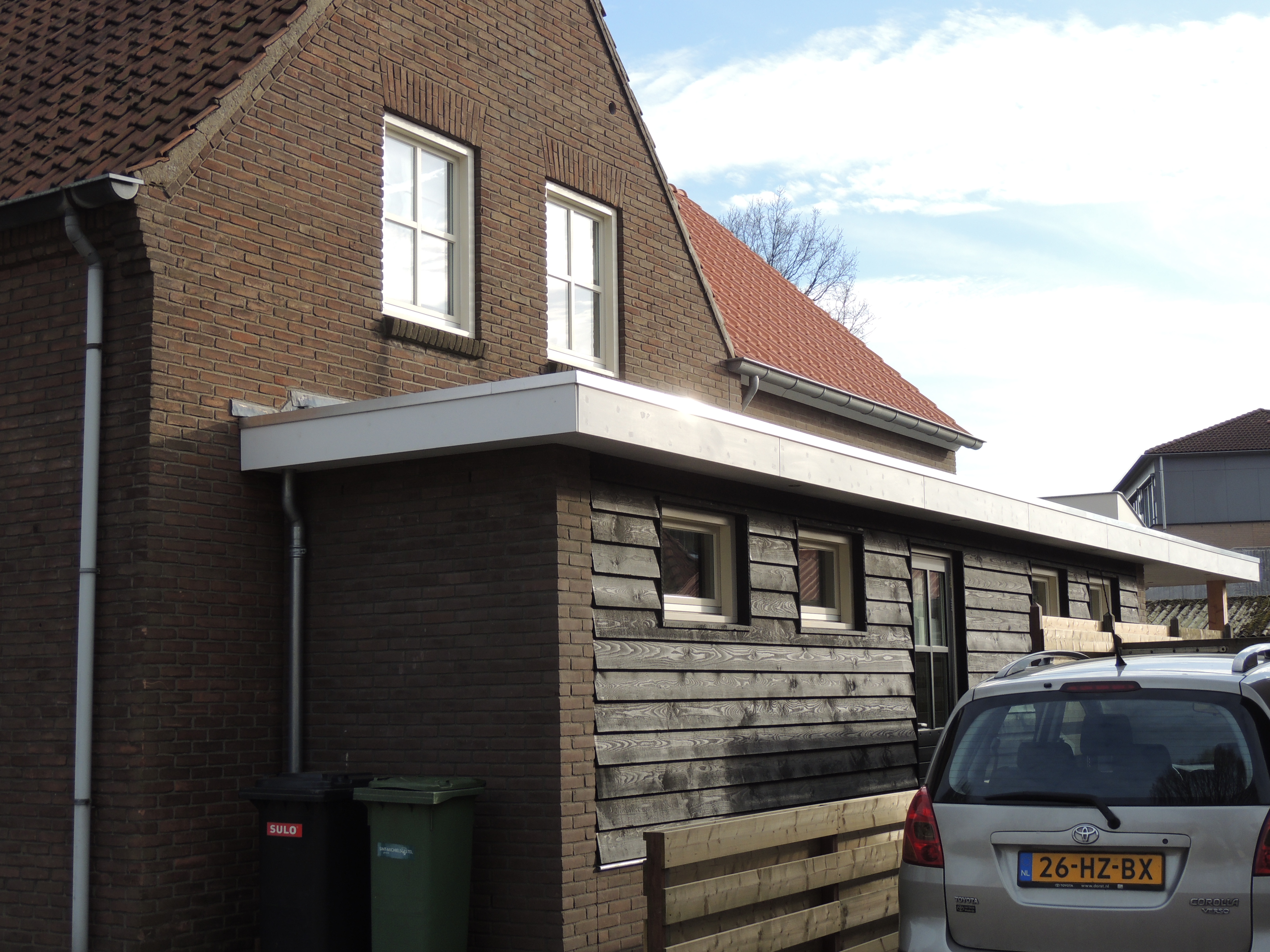 Realiseren nieuwe 1e verdieping op zowel woning als aanbouw met zink en houten open gevelbekleding a/d Mijlstraat te Boxtel